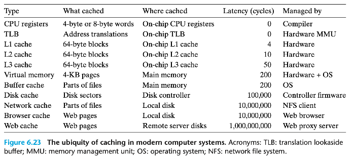 - 현대 시스템에서는 캐시가 어디에나 존재한다: