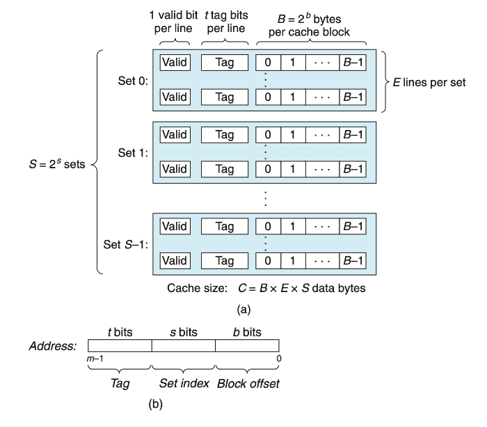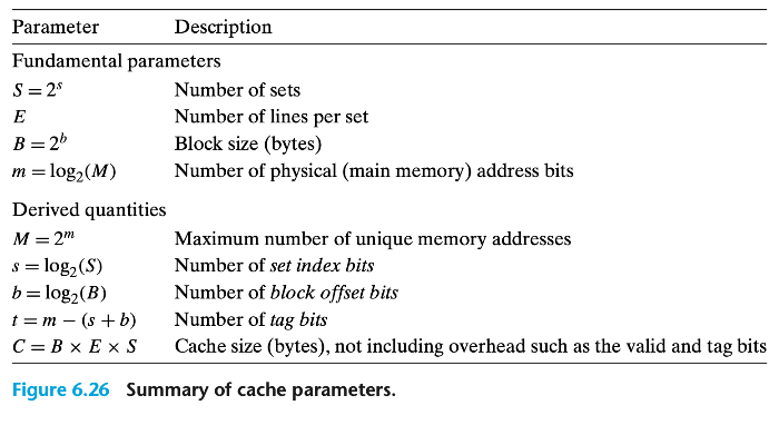 따라서, 캐시 구조는 (S, E, B, m)으로 요약할 수 있다​.