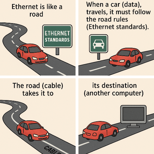 • 자동차(데이터)가 달릴 때, 도로 규칙(이더넷 표준)을 따라야 하고,
