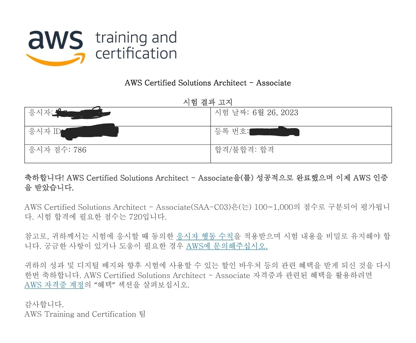 취업 후에 학생 때와는 다르게 일은 일대로 하고 퇴근 후에 피곤한 몸을 이끌고 다시 책상에 앉아 모니터를 보고 공부를 한다는 것이 쉽지는 않았지만 그리고 대학생 때와는 다르게 공부가 잘 되지도 머릿속에 쉽게 남지는 않지만 짧다면 짧은 인생에서 청소년 때 공부하던 것보다 더 집중한 것 같고(학생 때 워낙 공부가 재미없어서...) 보람찼습니다. 확실히 하고 싶어서 해야 할 동기가 있고 막연히 청소년 때 공부를 하면서 이 지식이 내 미래에 어떤 도움이 될지 모르고 공부하던 것과 다르게 오히려 지금 공부를 하는 것이 내가 진짜 필요로 하고 내 인생에 도움이 될 수 있다는 눈에 보이는 목표가 있다 보니 힘들어도 좋습니다. 한편으로는 청소년 때부터 개발공부를 했었다면 하는 아쉬움도 있네요(당연히 말도 안 되는 소리) 다음 시험은 이번 SAA-C03 취득 경험을 토대로 DVA-C02를 준비하려고 합니다. 마음 같아서는 올해 안에 Associate 자격증을 전부 따내고 영어 공부도 진지하게 고민해 봐야겠습니다. 감사합니다. 더 발전하는 고웅이 되겠습니다.