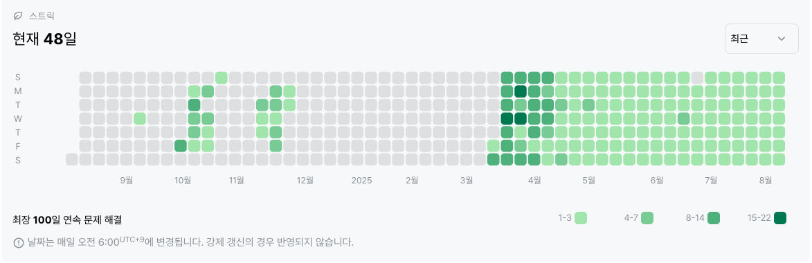 - 3월 14일 이 후 하루 빼고는 적어도 1문제 이상은 풀고 있다. - 하루 빠진 날은 나 만무 기획하느라 매우 많은 고민과 갈등이 있었기 때문에 까먹고 하지 못했다.(너무 아쉽다...)
