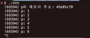 printf("(%d) p의 메모리 주소: %08x\n", getpid(), (unsigned) p); // 프로세스 ID와 p의 메모리 주소 출력