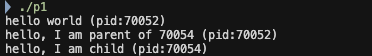 printf("hello, I am child (pid:%d)\n", (int) getpid());