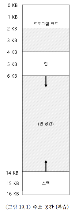• 드문드문 사용되는 주소 공간(sparse address space): 프로그램의 주소 공간 중 실제로 사용되는 부분이 드문드문 흩어져 있는 상태를 말한다. 이는 주소 공간의 상당 부분이 사용되지 않고 비어 있음을 의미한다.