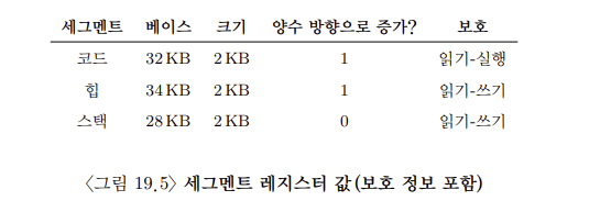 • 방향 비트(Direction Bit): 세그먼트가 양의 방향으로 확장되는지 음의 방향으로 확장되는지를 나타내는 비트, 이 비트를 통해 스택과 같이 음의 방향으로 확장되는 세그멘트를 지원할 수 있다.