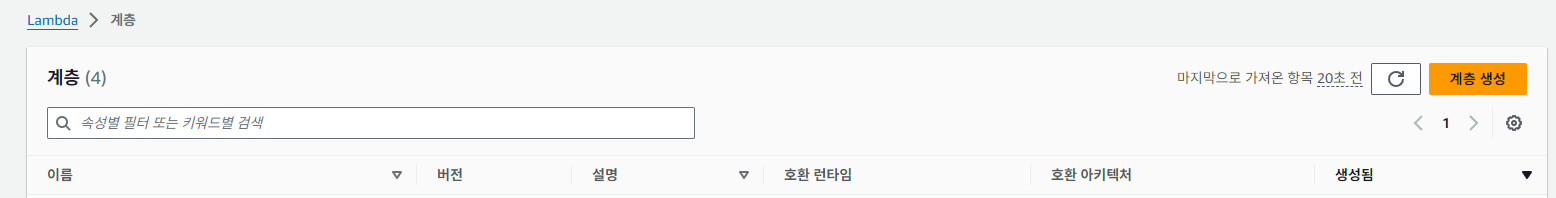 람다 계층 페이지에서 계층 생성을 클릭한다.