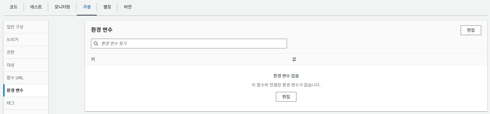 Lambda 함수에 환경변수로 SECRET_KEY를 key 값으로 하고 value를 실제 JWT 토큰을 생성할 때 사용하는 값으로 입력하고 저장을 한다.