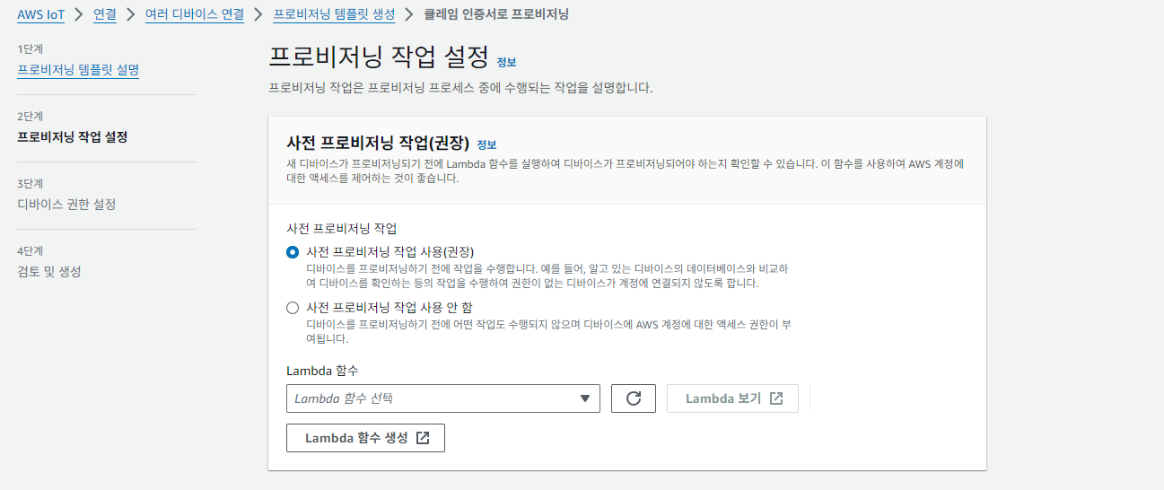 다음 프로비저닝 작업 설정에서 이전에 만든 Lambda 함수를 선택한다.
