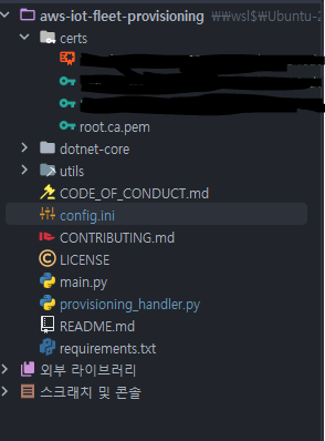 해당 프로젝트를 보면 main.py 와 provisioning_handler.py 가 있다. 이 중 현재 실습에서는 provisioning_handler.py 파일을 확인하겠다.