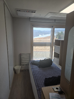 카드키와 방 안내를 받고 방으로 이동했다. 정말 깔끔하고 새 건물 느낌이 물씬 나는 방이었다. 방안에 책상이 없고 움직일 수 있는 공간이 좁은 느낌이었다. 하지만 이것은 모두 의도가 있었다.