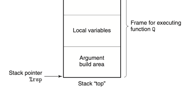 이런 상황에서 프로시저는 %rsp (스택 포인터)를 감소시켜 스택 프레임에 공간을 할당한다. 이 공간은 로컬 변수들을 저장하는 데 사용되며, 이는 그림 3.25의 “Local variables” 영역에 해당한다.