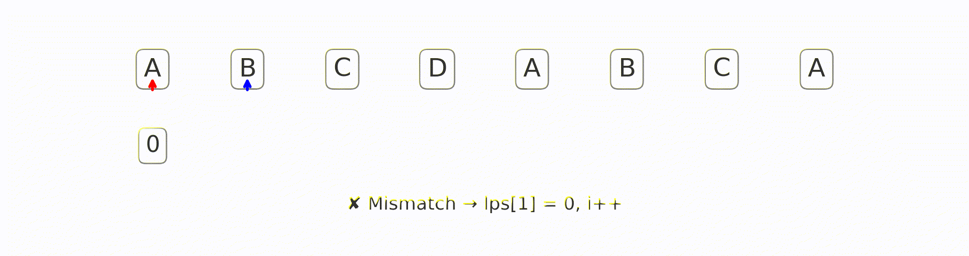 len = LPS[len - 1]로 되돌아감 (더 짧은 접두사 시도)len == 0이면LPS[i] = 0,i++
